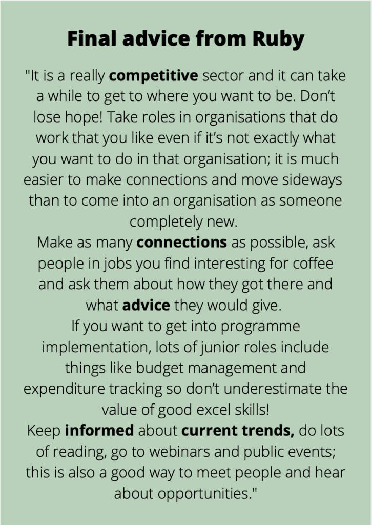 Here at OxSID, we aim to make navigating the world of International Development easier and more accessible to all. To do this, we have created this guide with our top tips on how best to access different jobs in development and to find the ones that best suit you and your skills/interests. Providing further insight into careers in this sector are two experts who have shared their advice and their reasons for pursuing their careers in International Development.